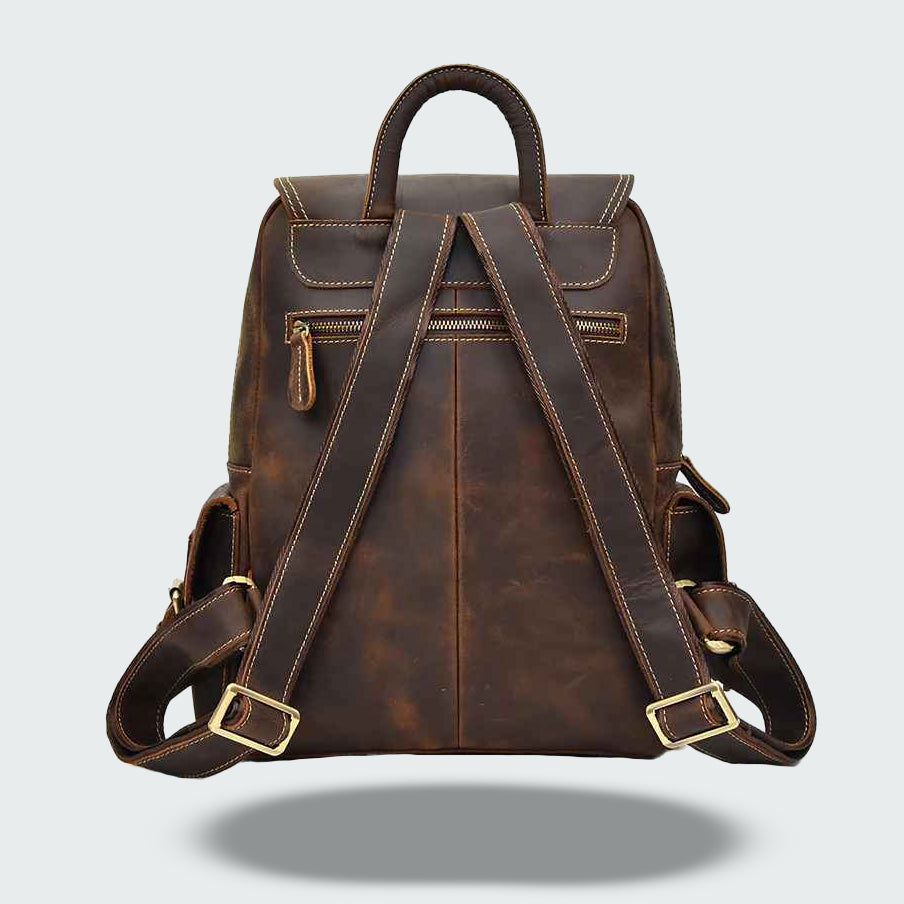 The Maximus Leather Rucksack is a blend of vintage craftsmanship and modern practicality, designed for those who value quality and style. Crafted from full-grain cowhide leather, this leather backpack in brown develops a unique patina over time, making it truly one of a kind.