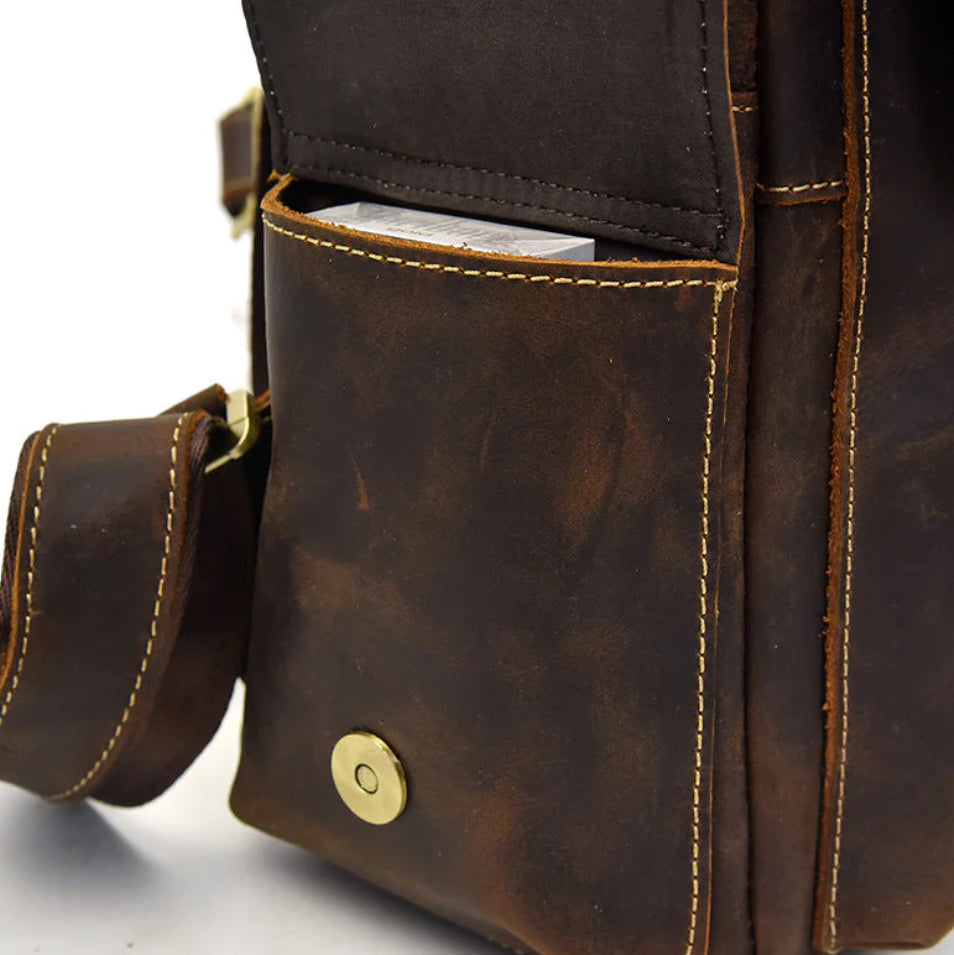The Maximus High Quality Leather Rucksack is designed for those who move with confidence and appreciate the finer things in life. Inspired by vintage European craftsmanship, this leather backpack in brown is an elegant yet highly functional companion.